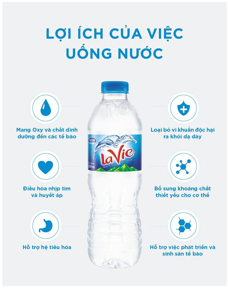 Nước chiếm khoảng 70% trọng lượng của cơ thể chúng ta. Vì vậy chúng ta cần cung cấp nước đầy đủ hàng ngày cho cơ thể của mình. Nước phân phối khắp nơi trong cơ thể như máu, cơ bắp, xương tủy, phổi, não bộ,… Nước rất cần thiết để cho cơ thể tỉnh táo và khỏe mạnh. Chúng ta có thể nhịn ăn một thời gian khá dài nhưng không thể nhịn uống trong vài ngày. Nhu cầu của cơ thể không được đáp ứng có thể gây ra cho cơ thể của chúng ta những hậu quả tiêu cực trước mắt và lâu dài. Mất nước kéo dài có thể dẫn tới viêm khớp dạng thấp, đau nửa đầu, đau thắt ngực, viêm đại tràng, sỏi thận, rối loạn tiêu hóa, huyết áp cao, béo phì, bệnh trĩ, bệnh lao phổi, viêm xoang và hàng loạt các bệnh nghiêm trọng khác. Hãy giúp cơ thể tăng sức đề kháng và phòng tránh những tình trạng này bằng cách uống nước thường xuyên để đảm bảo cơ thể có đủ nước cả ngày.